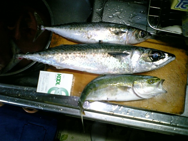 釣果:サバ4匹、ワカシ1匹 (3人合計:サバ13匹、ワカシ1匹)