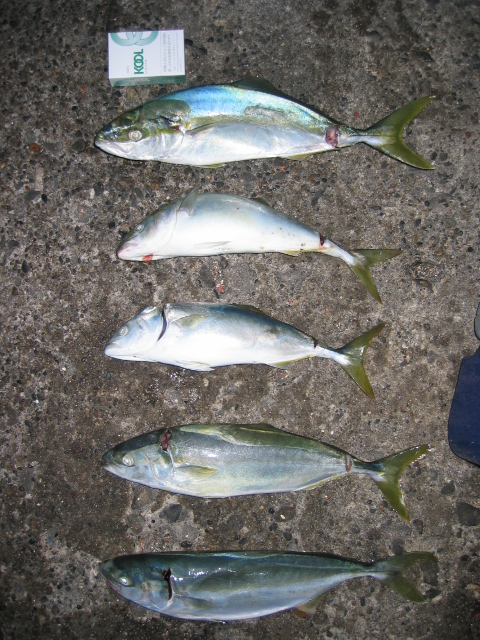 その後サバを1匹増やすも本命アジは来ず、旧護岸組からすごいナブラが発生するとの情報が入り、あとはルアーで釣って遊ぼうと旧護岸組と合流。